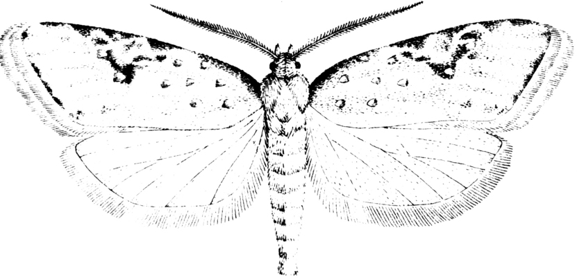 蛀害山茱萸果实的蛾类害虫。学名Asiacarposina cornusvora Yang。鳞翅目,蛀果蛾科。在中国,分布于陕西、山西、浙江、河南等省。仅发现为害药用植物山茱萸果实。此虫的成虫体长约6毫米,翅展14~19毫米,头部黄白色,触角丝状。雌蛾触角上的纤毛极细小,雄蛾触角具长纤毛,两侧对称。胸部及前翅灰白色。前翅中部及前缘4/5处,各有一黑褐色大斑组成的三角形斑块,斑块中间以白带分开。褐斑内杂有蓝灰色鳞。翅前缘有一列褐色长斑。翅基部和中部有竖鳞9丛,外缘有一列小褐斑位于脉端,缘毛灰褐色,双层。后翅灰黄色。腹部黄褐色(见图)。卵椭圆形,粉红色,表面有不规则的网状纹。末龄幼虫体长9~11毫米,前胸背板暗褐色,胸、腹部暗乳黄色,或略带黄红色。蛹近羽化时黄褐色。