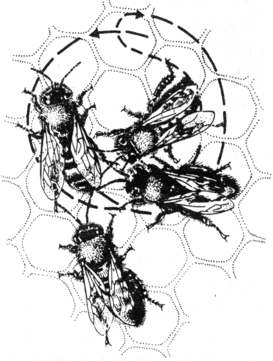 图1 蜜蜂的回旋舞、3只蜂随舞