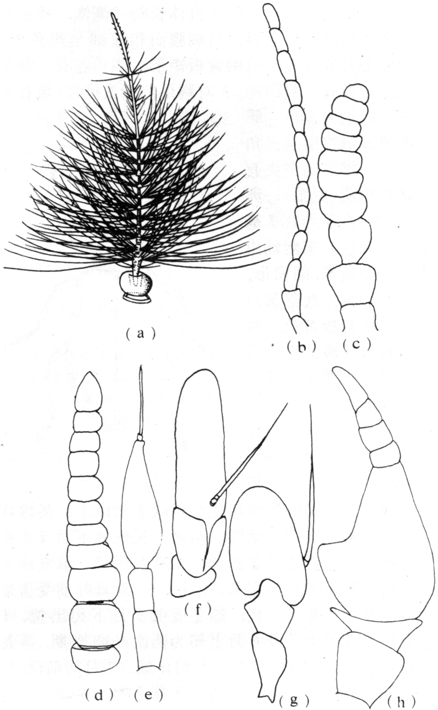 成虫体微小到中型,极少大型,体短宽、纤细,或圆筒形,少数种类近球形;体壁薄而脆弱或略带革质。头部多为下口式,能自由活动,颈片细小;触角多样(图1)长角亚目为丝状,一般8节以上,多者达40节;短角亚目和环裂亚目,触角一般为3节,第三节有时分成若干环状节,触角芒有或无。