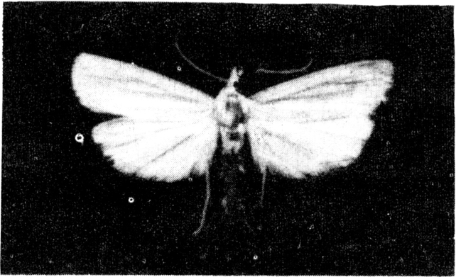 旱粮穗部害虫,又名粟缀螟、粟实螟。学名Mampava bipunctella Ragonot。鳞翅目,螟蛾科。分布于日本、印度、加里曼丹岛等国家和地区;中国广布于东北、华北、华东、中南、华南。主害谷子、高粱,次为玉米。雄成虫体长7~8毫米;雌虫9~11毫米,体白微红。复眼黑褐,下唇须与头等长,向前突出。前翅污白略带红色,前缘和外缘色较深,外缘有不甚明显的5个小黑点,中室中央及外端各具一黑点(见图),缘毛灰白;后翅白色半透明。卵椭圆,长约0.6毫米,初产乳白,渐变灰褐。末龄幼虫长约20毫米,体黄白,头黑褐,胸、腹部背面两侧各有一条浅红褐纵线,气门周围黑色,胸足淡褐,腹足趾钩双序全环。蛹长10~12毫米,黄褐色,腹部1~8节背中央有一纵隆线,第八腹节背中央另具一横隆线,腹末无臀棘。
