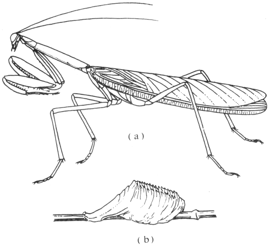 Mantodea。包括螳螂、刀螂等。昆虫纲、有翅亚纲、渐变态类。世界已知约2000种,主要分布于热带地区。中国记载有50多种。因形态和产卵与蜚蠊相似,有的分类学家主张将本目与蜚蠊目列为网翅目的2个亚目,由于习性与其他特征仍有不小的差异,现多分别独立成目。中国较常见的种类有:大刀螂,华北刀螂,小刀螂,薄翅螳螂等。