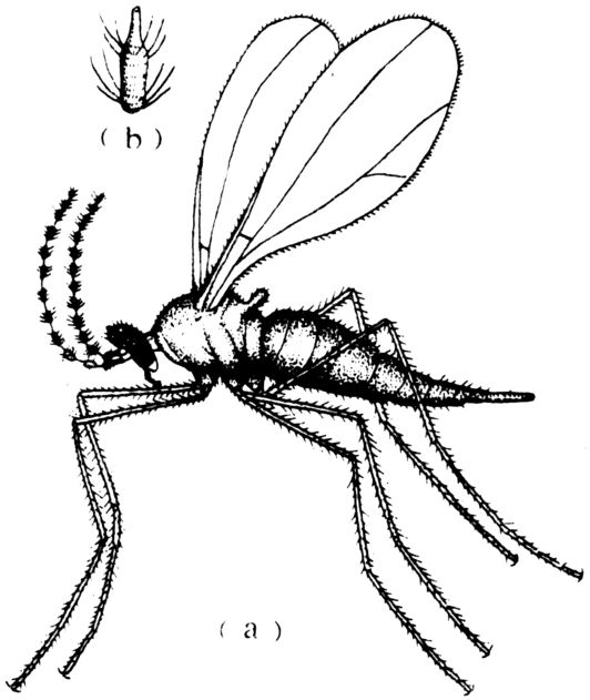 图1 麦红吸浆虫(a)及其触角节(b)