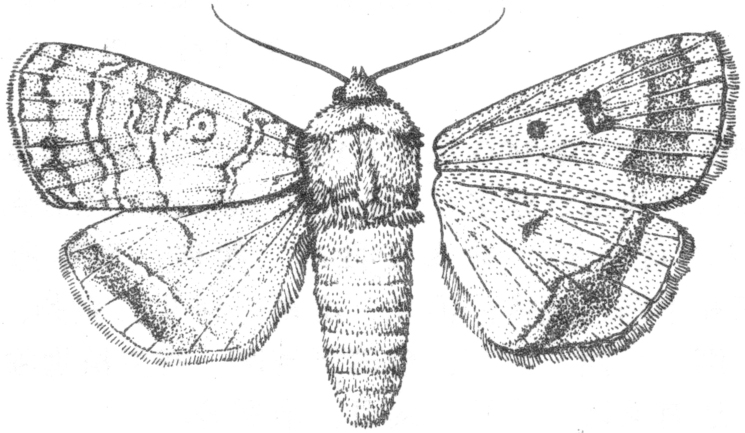 成虫体长12~15毫米,翅展27~33毫米。前翅黄褐色,顶角圆,外缘近弧形,斑纹明显,中线褐色,外斜至中室下角转向内斜,末端不到环形斑正下方,外线双线褐色,末端仅达肾状斑边缘的下方,亚端线锯齿形褐色,在第五径脉、第三中脉、第一肘脉末端的齿显著突出。后翅及翅脉黄褐色,端区的棕黑带窄,内侧中部稍向内凸,外侧有黄斑直达外缘,与缘毛相接,外线棕黑色在中段隐约可见(见图)。卵半球形,底平,高0.40~0.44毫米。幼虫1、2龄铁锈色,3龄后体色深绿、绿褐、红褐、暗褐不一,末龄体长31~41毫米,气门上线有分散白点,蛹纺锤形,长15~18毫米,红或深红色,腹部第五至第七节背面及腹面有7~8排圈式或半圈式细密刻点,腹部末端的刺基部相连。