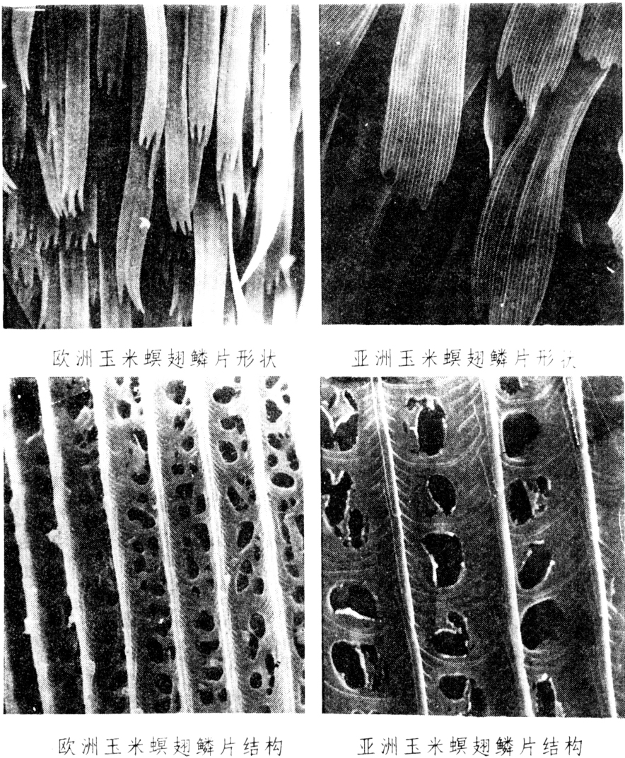 欧洲玉米螟和亚洲玉米螟翅鳞片的扫描电镜图像