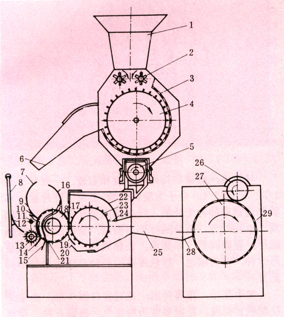 图3 毛刷式锯齿轧花机结构示意