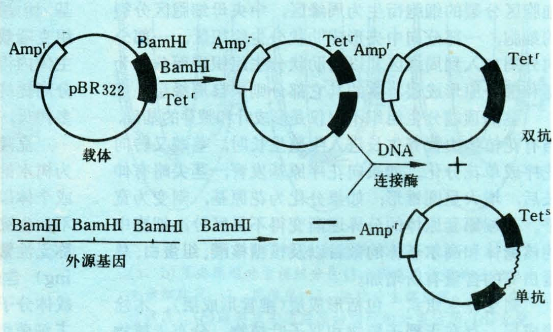 有些载体分子带有一个或多个抗药性标记基因,当外源DNA插入到抗药基因区后,基因失活,抗性消失。如一质粒有A和B两个抗药性基因,当外源基因插入到B基因区后,便只抗A药而不抗B药。因此能在A药培养基上正常生长而不能在B药培养上生长的便是重组分子。
