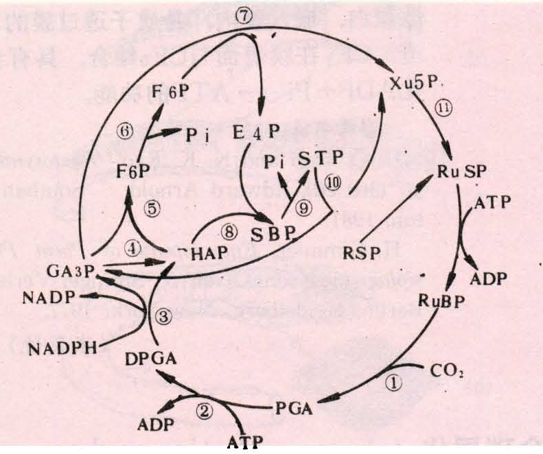 途径植物通过光合作用同化CO2形成糖及其他有机物,要经过一系列酶促反应。20世纪50年代,卡尔文(M.Calvin)等用14C示踪结合纸谱分析的方法,以单细胞藻类为材料,研究光合碳同化途径,提出了还原磷酸戊糖途径,以后即称之为卡尔文循环。到60年代