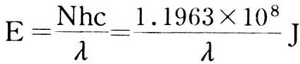 式中E为能量(焦耳);N为阿佛加德罗常数6.023×1023;h为普朗克常数6.6262×10-34焦耳·秒;C为光速2.9979×108米/秒;λ为波长(纳米);J为焦耳。