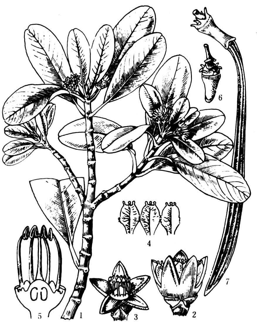 常绿乔木或灌木,常形成红树群落,有呼吸根,小枝节部常较粗。单叶,全缘,对生,托叶包裹顶芽,着生叶柄间,早落,基部内表面有粘液毛。少互生叶而无托叶。气孔器通常无规则型或内轮列型。花两性,少单性或杂性同株,单生或为聚伞花序,有时为总状花序。萼片4~5枚,厚肉质或革质,合生,萼裂片宿存,萼筒与子房合生或分离,合生的萼筒有时沿子房延长。花瓣与萼片同数,全缘,2裂,撕裂状、流苏状或顶部有附属体,常有柄,早落或花后脱落,稀宿存。芽内旋卷或折叠。雄蕊与花瓣同数,有时为3~4倍,或不定数,常与花瓣对生,花丝分离或基部合生。花药纵裂,稀瓣裂。花粉二细胞型,具3孔沟,有或无蜜腺盘。子房下位或半下位,少上位,2、6、8室,有时为1室。胚珠2或多数,倒生或横生。胚乳核型。浆果状,少蒴果状。海滩红树的种子常在母树上发芽,胚轴突出果外成一长棒状,坠入海滩淤泥繁殖,为典型的“胎生植物”。染色体x=8,9。