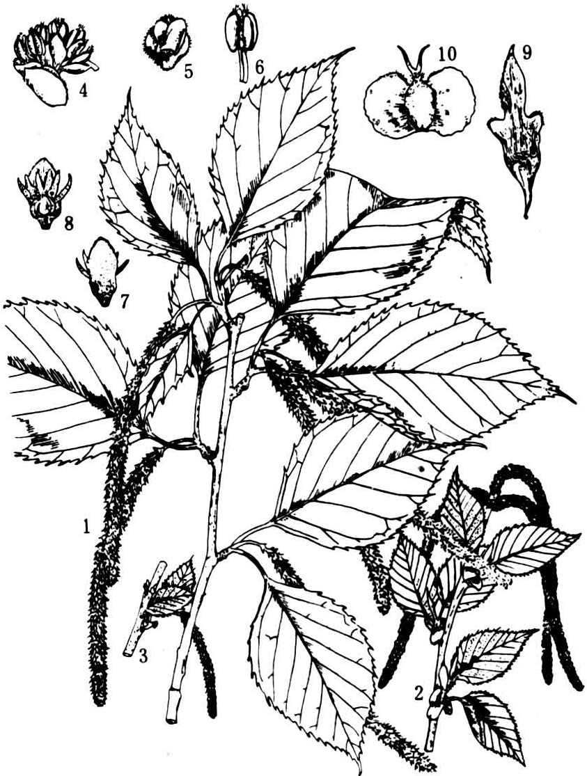 桦木属(Betula)喜光速生,多数树种耐寒性强,耐干旱瘠薄土壤,常为北温带地区采伐迹地或森林破坏后天然更新的先锋树种。常见的有白桦(B.platyphyl-la)、红桦(B.albo-sinensis)、光皮桦(B.lumini-fera)等。桤木属(Alnus)多数种喜潮湿生境,为河岸护堤及水湿地带的重要造林树种。常见的有桤木(A.cremastogyne)、江南桤木(A.trabeculosa)、赤杨(A.japonica)等。虎榛子(Ostryopsis davidiana)树皮及叶可提取栲胶,种子油供食用和制肥皂,枝可编制农具。多数种材质较轻软,供建筑、家具、火柴杆等用材;果序、树皮含鞣质,可作染料及提取栲胶;木炭可制黑色火药;花粉为优良蜜源。