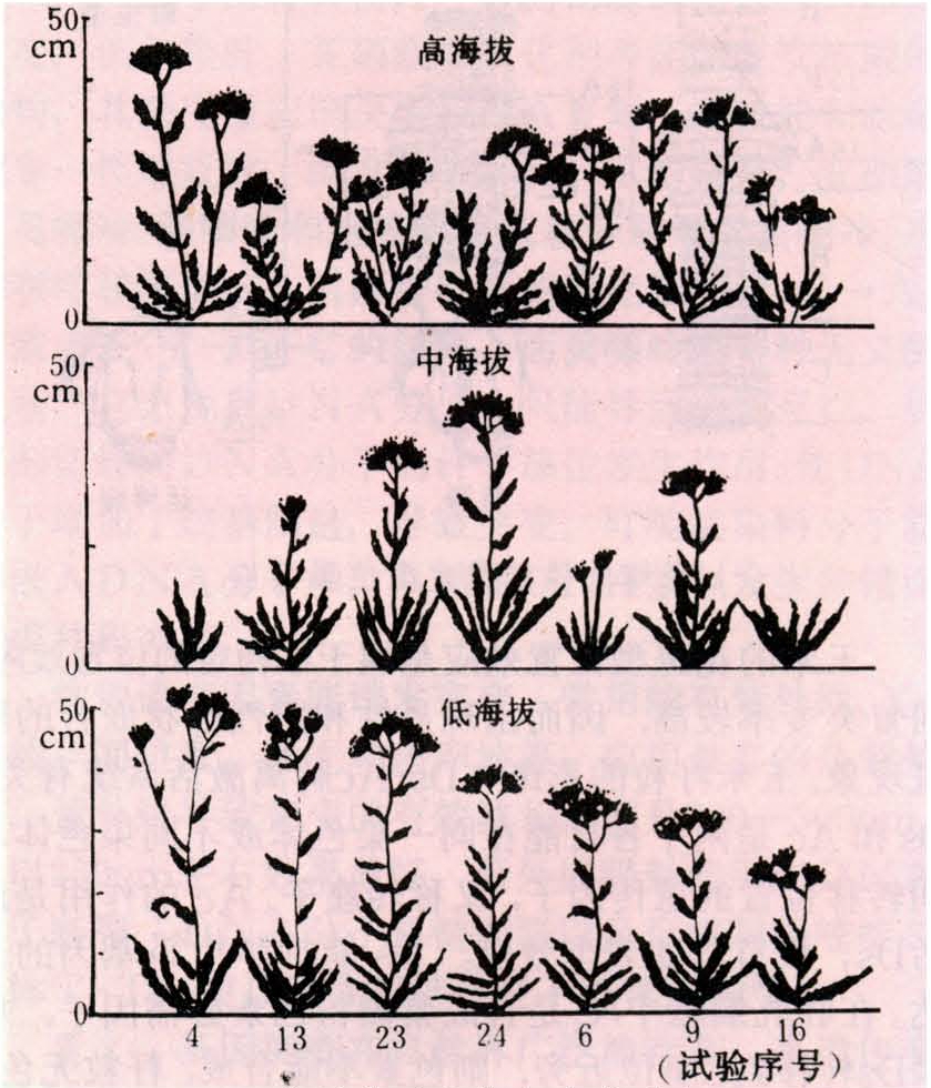 蓍草植株对海拔高度的反应