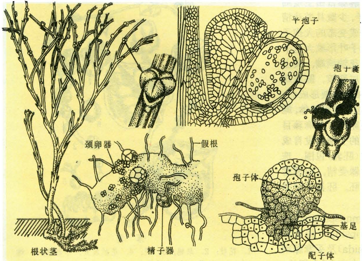 陆生或附生草本。茎和根状茎二岐分枝,具假根和菌根。茎表皮有气孔,具星状原生中柱,木质部仅含管胞,韧皮部包围木质部。茎上不规则生有小鳞片,最初绿色,很快为干膜质,鳞片无维管束或维管束终止于鳞片基部。孢子囊厚壁,在早期个体发育阶段为3个原基,后来2或3个融合形成聚合囊,通常顶生于极短的侧枝上,位于二叉状附属物的腋部。孢子同型。配子体小,圆柱形,为地下轴性结构,二岐分支,有假根和菌根真菌。雌雄同株。精子器半球形,略突露于配子体表面,精子多鞭毛。颈卵器局部沉陷于配子体内。孢子体、根状茎和配子体都生有球形多细胞的芽孢,供营养繁殖。(吴翰)