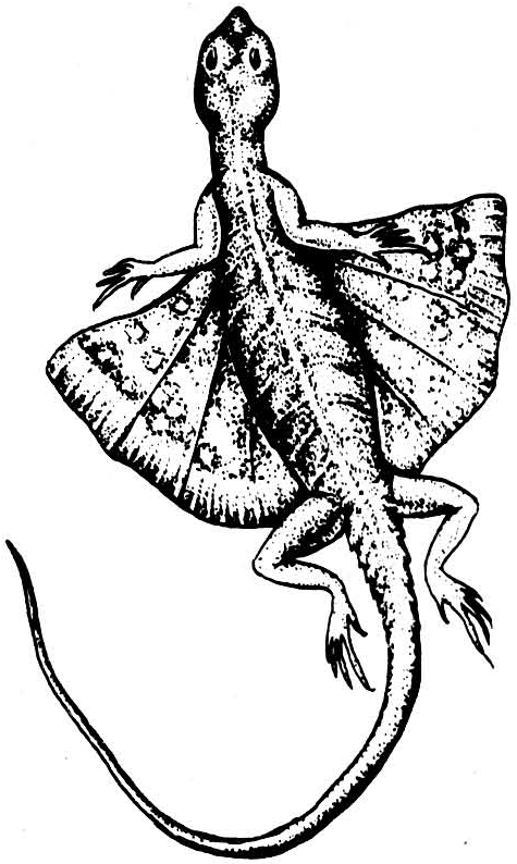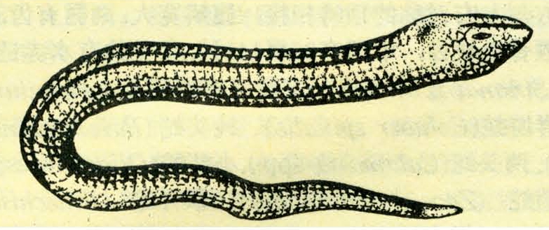 是爬行纲中极为繁盛的类群,最早的化石发现于三叠纪末或中生代早期的地层。中国产蜥蜴约130种,分属于8科:①壁虎科(Gekkonidae),夜行性低等蜥蜴,全身被粒鳞,皮肤薄而柔软;眼大,眼睑不能活动;四肢发达,各种动物的指趾形状不一;分布在中国平原、丘陵和南方各省的壁虎(Gekko japonicus)、蛤蚧(Gekko gecko)、蜥虎(Hemidactylus bowrin-gii)、半叶趾虎(Hemiphyllodactylus yunnannensis)等,因指趾末端扩展成吸盘状,能在物体的垂直面上爬行;但是生活在沙漠和戈壁滩等干旱生境的沙虎(Teratos-cincus przewalskii)、漠虎(Alsophylax)、裸趾虎(Cyr-todactylus elongatus)等则营地下穴居生活,指趾末端缺乏适于攀附的结构;②鬣蜥科(Agamidae),是中小型的昼行性蜥蜴类,头背无对称排列的大鳞片,体鳞小,有棱或形成鬣鳞,有些种类的雄蜥具板鳞、喉褶或喉囊;四肢强健,爬行迅速;尾较长,无自断行为;全世界约有290种,广布于旧大陆,中国产44种,常见的是分布在青藏高原和蒙新高原的沙蜥(Phrynoce-phalus)、鬣蜥(Agama),西南和华南地区的飞蜥(Draco)(图3)、龙蜥(Japalura)、树蜥(calo-tes)和蜡皮蜥(Leiolepis belliana)等;③巨蜥科(Varanidae),全长1米以上,是最大的蜥蜴类群,体背被粒鳞,腹鳞方形,肢强爪利,尾长,不易折断;陆生,擅于爬树和游泳,产卵于地穴或树洞中;云南和两广产一种巨蜥(Varanus salvator);④鳄蜥科(Shinisauridae),头窄长,头、颈之间有一浅沟;体躯粗壮,指爪尖利;尾侧扁,背面有大鳞所成的棱嵴;本科单属独种,即仅见于广西瑶山等地的鳄蜥(Shinisaurus crocodilurus)是一级保护动物;⑤蛇蜥科(Anguidae),体呈蛇形,四肢退化,仅存带骨残迹,头顶有对称的大鳞片,体及尾部覆圆鳞;眼小,有活动性眼睑;体侧自颈后至尾基部有一明显纵沟:尾长,断后能再生;主要分布在南美洲.中国长江以南地区产2种脆蛇蜥(Ophisaurus spp.)(图4);⑥石龙子科(Scincidae),头背部有对称排列的大鳞片,周身被覆瓦状圆鳞;尾较粗圆,有再生力;本科约有600多种,是全球性分布的类群,中国产31种,种类最多的是石龙子(Eumeces)、蜒(L.ygosoma)、滑蜥(.Scincell)和南蜥等属,主要分布在南方广大地区;⑦蜥蜴科(Lacertidae),头背有成对的大鳞,体背被粒鳞或棱鳞;腹鳞方形或矩形,纵横排列成行;后肢腹面及基部有股窝或鼠蹊窝;尾长易断,能再生;本科约有140多种,广布于旧大陆,尤以非洲为多,中国约产20种,绝大多数是蒙新高原常见的各种麻蜥(Ere-mias)、遍布长江南北的草蜥(Takydromus)和亚热带地区的地蜥(Platyplacopus)等;⑧双足蜥科(Dibami-dae),体小如蚓,全身均被圆鳞;眼小,无耳孔,舌短,齿尖而钩曲;缺前肢,雄性有一对嵌于肛侧凹沟内的鳍状后肢;尾短钝。本科只有1属,5种,中国产白尾双足蜥(Dibamus bourreti),分布在广西瑶山、龙胜地区。