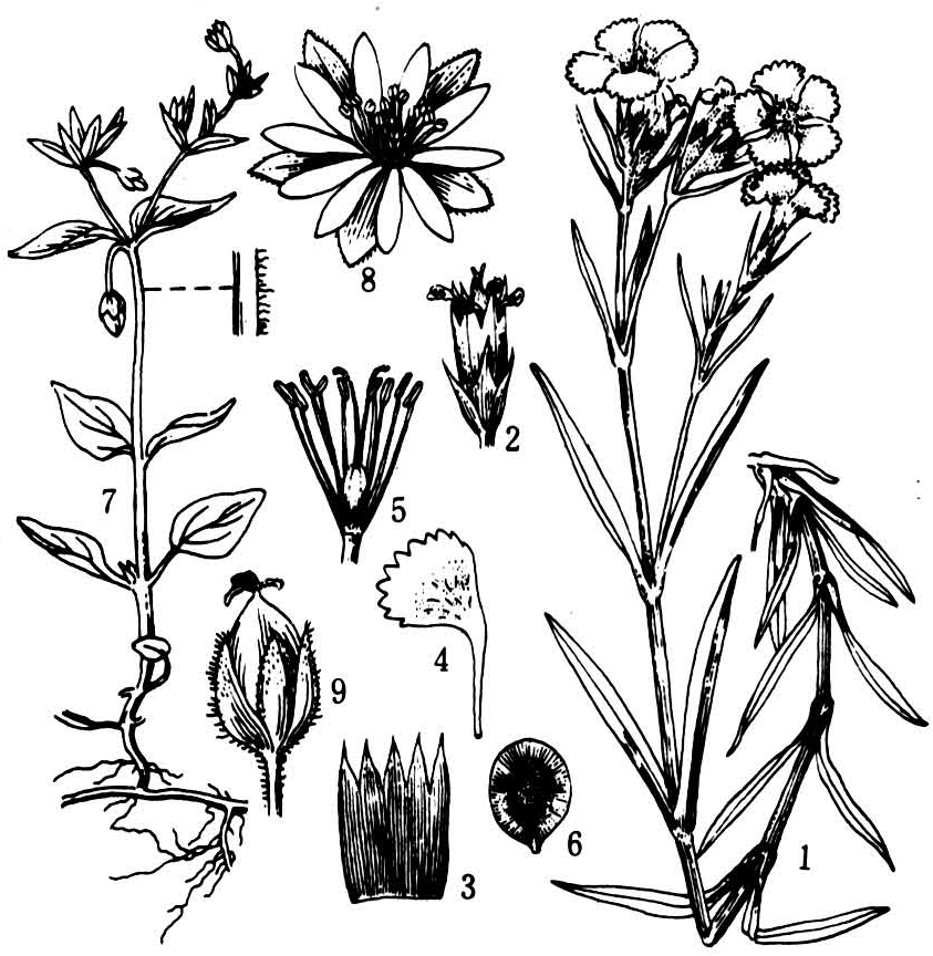 石竹与繁缕(1~6.石竹;7~9.繁缕)