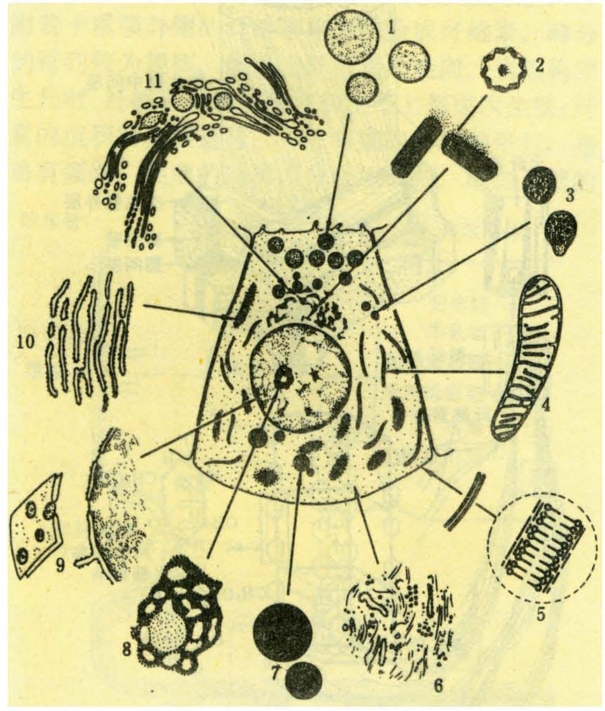 细菌细胞的质膜外有厚约10~100nm的细胞壁,其结构和化学组成与真核细胞的细胞壁不同,且不同种类的细菌间也存在若干差别。有些细菌细胞壁的外侧还包有粘液层或荚膜,有些具有鞭毛或菌毛,其鞭毛的结构和化学组成均与真核细胞的不同,菌毛是一些由蛋白质组成的细小突起(见细菌鞭毛)。双股螺旋DNA分子呈环状,常附着在质膜或间体上,或不规则地折叠成团块状,称拟核。DNA分子不与蛋白质结合组成核蛋白,拟核外面也不具核被膜,在最适宜的生长条件下,DNA分子可能存在2~4个复本,拟核也可能有多个。质膜可凹陷形成复杂程度不一的间体,其上含有琥珀酸脱氢酶和细胞色素类物质,与能量代谢有关,故亦称拟线粒体。有些种类产生腺苷三磷酸所需的酶类及其他化合物直接附着在质膜上。细菌进行无丝分裂时,间体还能起固定复制中的DNA分子、使复制出的DNA分别进入两个子细胞的作用。在光合细菌中,质膜内折形成载色体囊泡,称拟类囊体,其中含有细菌叶绿素和类胡萝卜素,是进行光合作用的场所。细菌核糖体的体积较小,其结构与真核细胞的相似,可游离存在,亦可附着在质膜的内侧面,行使附着核糖体的蛋白质合成功能。细菌细胞质内还含有多种酶、糖原颗粒,蛋白质颗粒和脂滴,有时还有泛泡和与固定CO2有关的多面体等。细菌细胞通常以一分为二的无丝分裂方式增殖,有些种类在不良环境中则能形成内生孢子。
