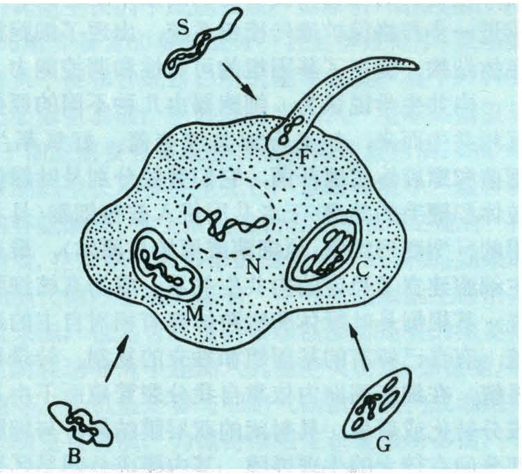 图1 真核细胞的内共生起源学说图解