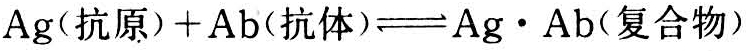 抗体分子上的抗原结合点与抗原分子上的决定簇之间的三维结构具有相对应的互补关系,二者能通过非共价键、氢键、静电引力、范德华力及疏水键结合,形成抗原-抗体复合物。这是一种双分子可逆反应,其结合和解离率基本服从质量作用定律。它们之间互补关系越密切,结合力越强。