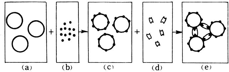 颗粒性抗原,如细菌、红细胞、精子等与对应抗血清在有电解质时,彼此相联,凝集成簇的现象。可溶性抗原如蛋白质,脂多糖等通过吸附或化学反应与免疫无关的载体颗粒如红细胞、炭粒、乳胶等结合后,形成带有抗原的颗粒,这一过程叫致敏。这种致敏颗粒与相应抗血清结合后,亦可出现凝集现象,谓之间接凝集反应(见图)。用血球作载体的叫间接血球凝集试验,用炭粒作载体的叫间接炭凝试验,依此类推。同样,用抗体也可致敏载体与相应抗原反应,称为反向间接凝集试验。若用相应抗原阻断凝集反应称之为间接凝集抑制试验,用抗体阻断反向间接凝集反应称为反向间接凝集抑制试验。