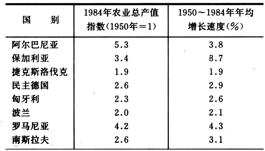 表1 东欧国家和南斯拉夫农业生产发展速度