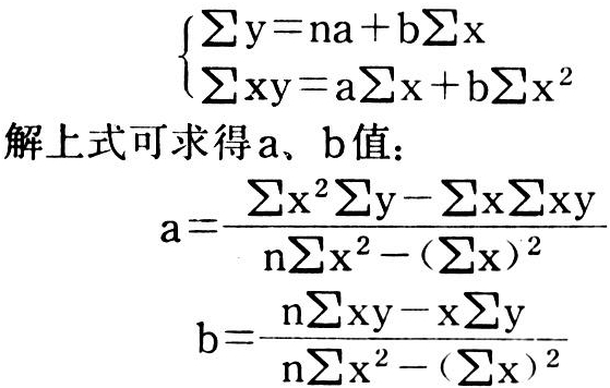 回归分析法是根据历史资料,列出代表产量和成本函数关系的回归方程,用来计算固定成本和变动成本,然后再预测计划产量的总成本和单位成本。若以x表示产量,y表示总成本,a为固定成本,b为变动成本率,∑为合计,n为期数,则数据直线方程:y=a+bx,可以建立一组决定回归直线的联立方程组,然后求出a、b值,就可预测在任何计划产量下的产品成本。常用的是最小二乘法。其联立方程式如下: