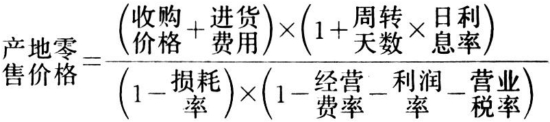 ②销地零售价格。一般要经过批发、调拨环节,最后由零售商业经营,以销地零售价格出售给消费者。计算公式: