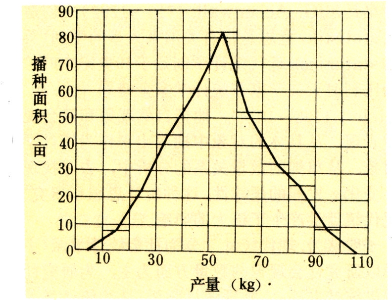 是用曲线起伏表现农业统计数值变动的图形。它可以反映农业现象在不同时间上的变动和发展情况、总体单位的分布情况以及现象之间的依存关系等,在农业统计图中用途比较广泛。常用的有动态曲线图、半对数图、分布曲线图、依存关系曲线图、计划执行情况曲线图等。动态曲线图是反映农业现象在各时期的发展水平和发展速度的图形,绘图时以直角坐标的横轴表示时间,纵轴表示动态指标。半对数图是动态曲线图的一种特殊图式。指用对数尺度来表示直角坐标中的纵坐标的图式,它特别适用于相差悬殊的数量比较(如图1)。