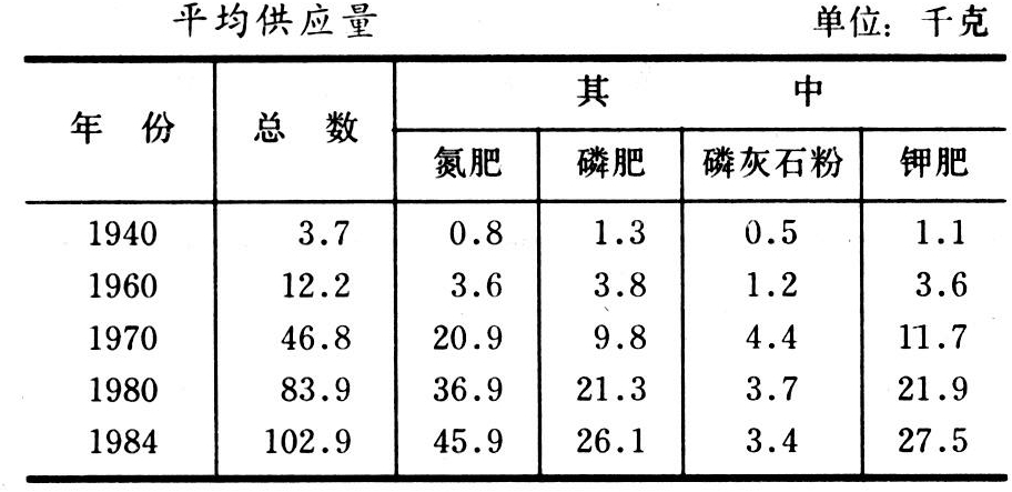 表5 苏联1940~1984年每公顷耕地化肥(有效成分)平均供应量
