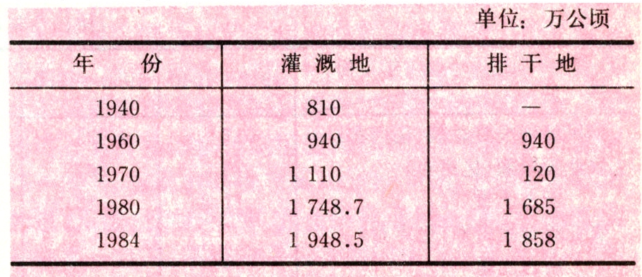 表6 苏联1940~1984年灌溉地和排干地面积