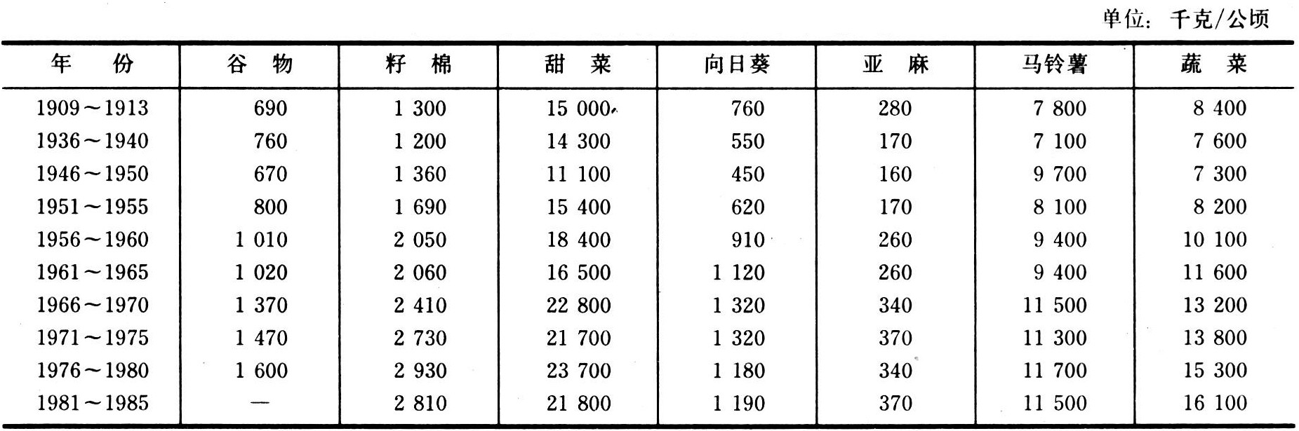 表11 苏联主要作物单位面积年平均产量