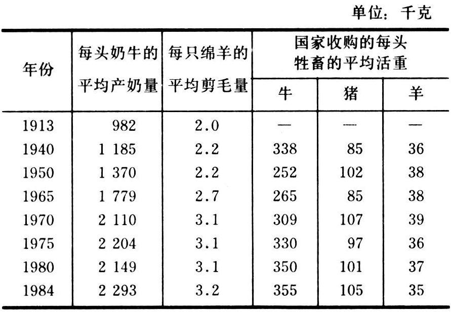 表12 苏联平均每头牲畜产品量