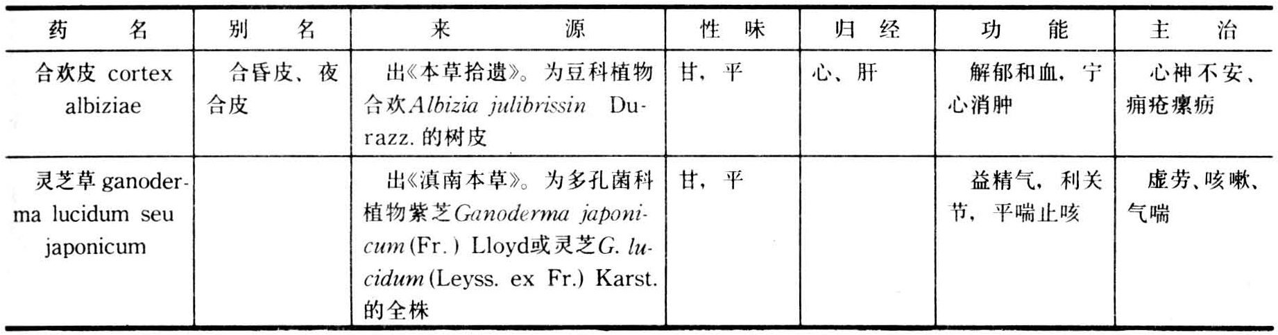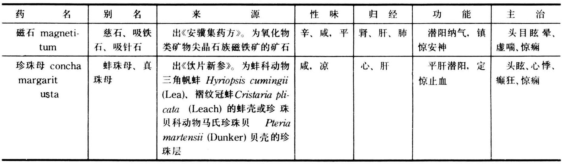 天竺黄以及磁石、珍珠母、合欢皮、灵芝草等(表)。 安神定心药 安神定心药(续)