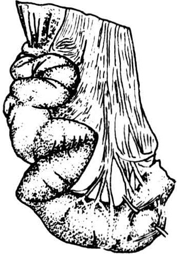 肠扭转是肠管沿自身的纵轴或以肠系膜基部为轴发生不同程度的扭转(图1)。或肠管沿其横轴发生折叠,如左侧大结肠及盲肠扭转或折叠,小肠系膜根部扭转;肠缠结是一段肠管与另一段肠管及肠系膜、韧带等缠绕在一起(图2)。肠套叠是一段肠管与其相连的另一段肠管套在一起,多发生于空肠和回肠(图3)。肠钳闭是肠管落入腹腔的天然或病理孔隙内,多发生于小肠和小结肠。多因腹痛起卧滚转,骑乘奔跑过猛,劳役过重,转弯太急,跳沟越涧,突然跌倒,空肠过饮冷水或采食冰冻饲料等,致使腹内压增大,肠管互相挤压,肠管痉挛性收缩或弛缓,肠管正常位置改变而发。
