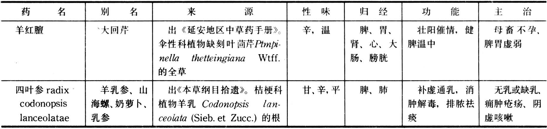 能增强家畜性机能或促进性机能恢复和提高受胎率的药物称催情药。促进母畜下乳或使乳量增加的药物称催乳药,又称通乳药或下乳药。催情药多性温或平,能补气血,暖腰肾,壮阳益精,增强性欲。适用于公畜性欲衰弱、阳痿、滑精,母畜不发情或性欲不旺,不孕。使用催情药,必须根据畜体的情况,适当配伍。体肥气虚者配补气药,体弱血虚者配补血药。催乳药补血益气,通行血脉。适用于乳汁不下或乳量不足。气血虚弱而致的无乳或缺乳,宜气血双补,药用党参、黄芪、当归等,气滞不通,乳房胀满而痛,配当归、川芎、穿山甲等以行气通络。常用药物有阳起石、淫羊藿、胡芦巴、王不留行,以及仙茅、羊红膻、四叶参等(表)。(赵朝忠)