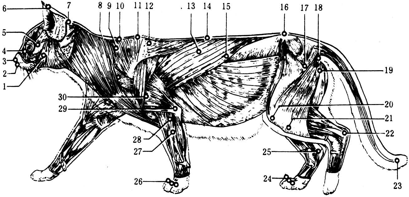 图1 猫的肌肉及穴位