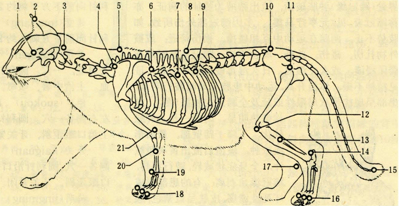 图2 猫的骨骼及穴位