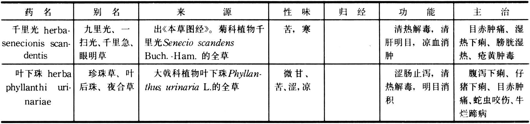 疏散肝热、平肝潜阳、明目退翳的药物。亦称清肝明目药。本类药性偏寒,以入肝经为主。能清散肝火,明目退翳,消瘀消肿。用于因肝经风热、肝火上炎和肝肾阴虚所致目赤肿痛,羞明流泪,内外障眼,胬肉翻睛,视物不清等症。使用本类药物时,应根据病因和兼证配伍,如外感风寒、羞明流泪者配解表药;肝火旺盛、目赤肿痛者配清热泻火药;外伤所致云翳遮睛、眼泡翻肿者配活血化瘀药;肝肾亏虚、内障目昏、视物不清者配滋补肝肾的药物。常用药物有石决明、草决明、夜明砂、密蒙花、木贼草、青葙子、谷精草、刺蒺藜以及千里光和叶下珠等(表)。