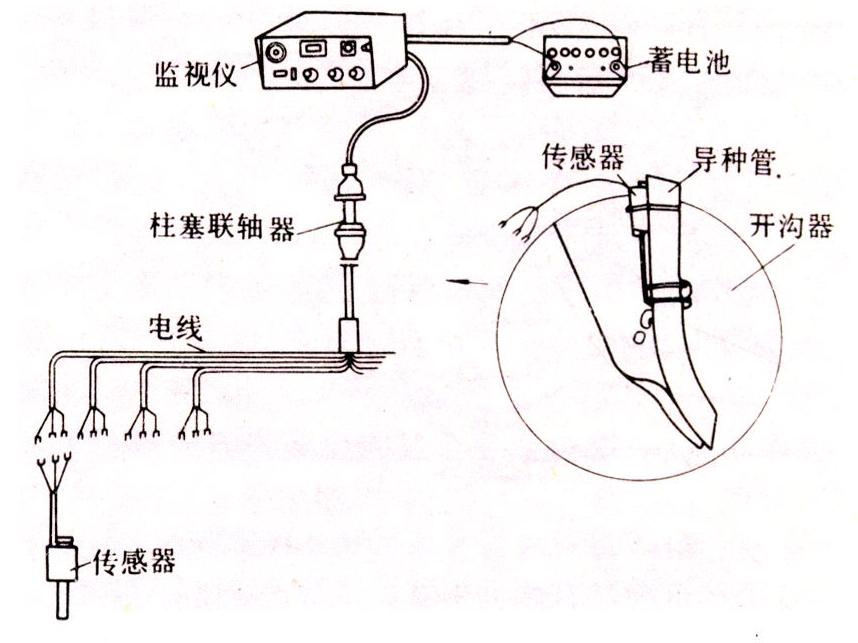 播种机上用于监视排种器工作情况的装置。主要用于精密播种机。当某一行排种器发生故障,种子不排出或阻塞时,通过传感器能及时地自动报警,并指示出发生故障的所在行位置。
