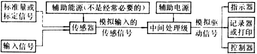 农机测试用的仪器除卡尺、秒表、电压表、转速计、温度计等简单仪表外,还有不少多功能复合仪器系统。一般测试系统由传感器、中间处理和终端三级构成(图)。第一级传感器的主要功能是将测得物理量转换为测试信号;第二级中间处理级主要是放大被转换的信号,经传输、运算使其可以被第三级终端装置所接受;第三级是显示、记录、贮存为人的感官或控制器所接受和识别的信息。