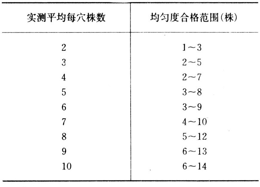 每穴不同株数的均匀度合格范围
