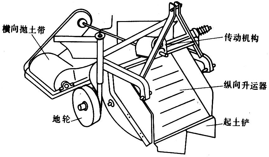 能连续铲土并横向抛土的农田建设机械。与拖拉机配套使用,用于修筑梯田、开挖大中型沟渠等作业。具有效率高、机动性好等特点。