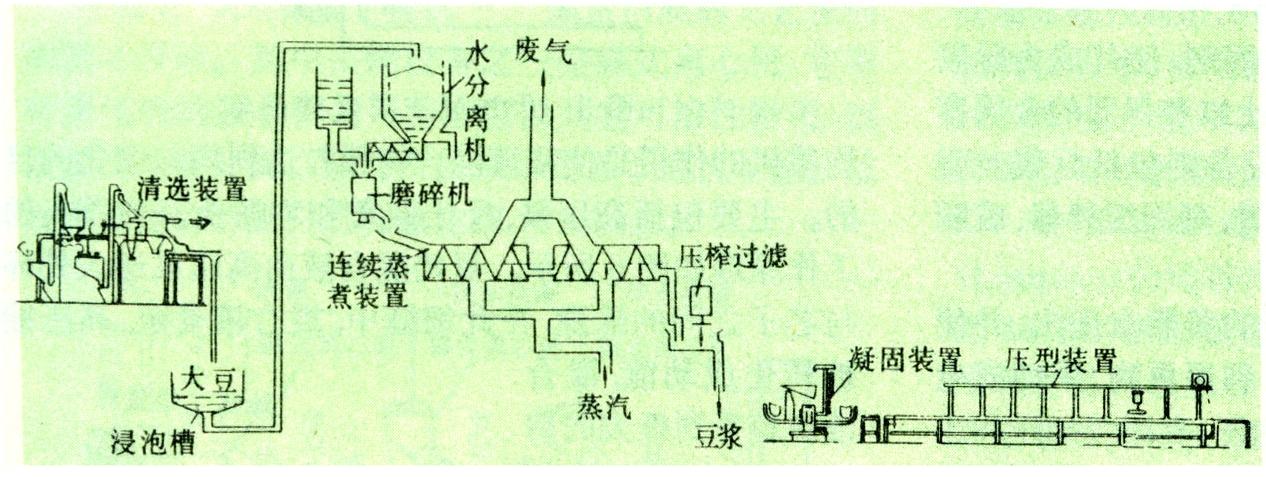 包括将大豆清选、磨浆、滤浆、煮浆、凝固、压型等一系列过程所需的设备。常见的工艺流程如图1所示。