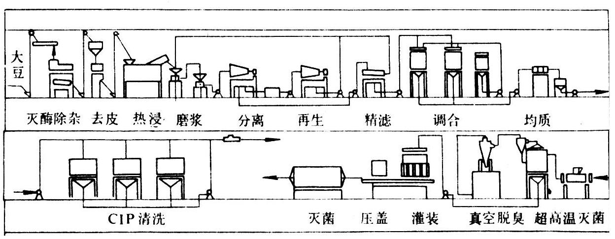 大豆制品加工设备按豆制品加工工艺的不同,有不脱脂豆制品加工设备与脱脂大豆蛋白质加工设备之分。不脱脂豆制品可分为非发酵豆制品与发酵豆制品,其中非发酵豆制品加工设备主要用于豆浆及其再制品的加工,如豆奶、豆腐、百叶、油炸豆制品、腐竹、豆粉、速溶饮料等;发酵豆制品加工设备主要用于酱油、腐乳、豆豉、酸豆奶等制品的加工。脱脂大豆蛋白质加工设备主要用于浓缩、分离、组织状以及纤维状大豆蛋白的加工。