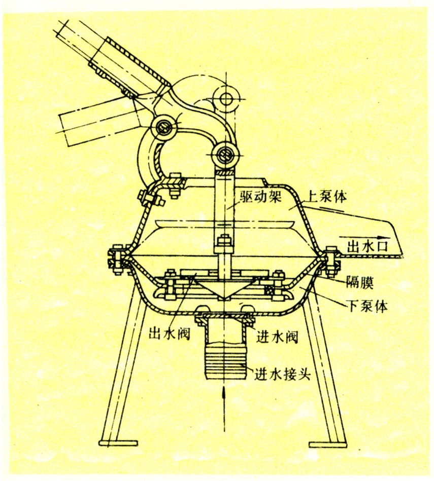 容积泵的一种,依靠挠性隔膜往复运动而提取、输送液体。