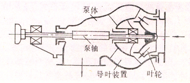混流泵有蜗壳式(图1)和导叶式(图2)两种型式。导叶式混流泵又名斜流泵。两种型式都有立式和卧式两种结构。一般中、小型混流泵多为蜗壳式;大型混流泵多为导叶式。井用混流泵常用导叶式多级泵。