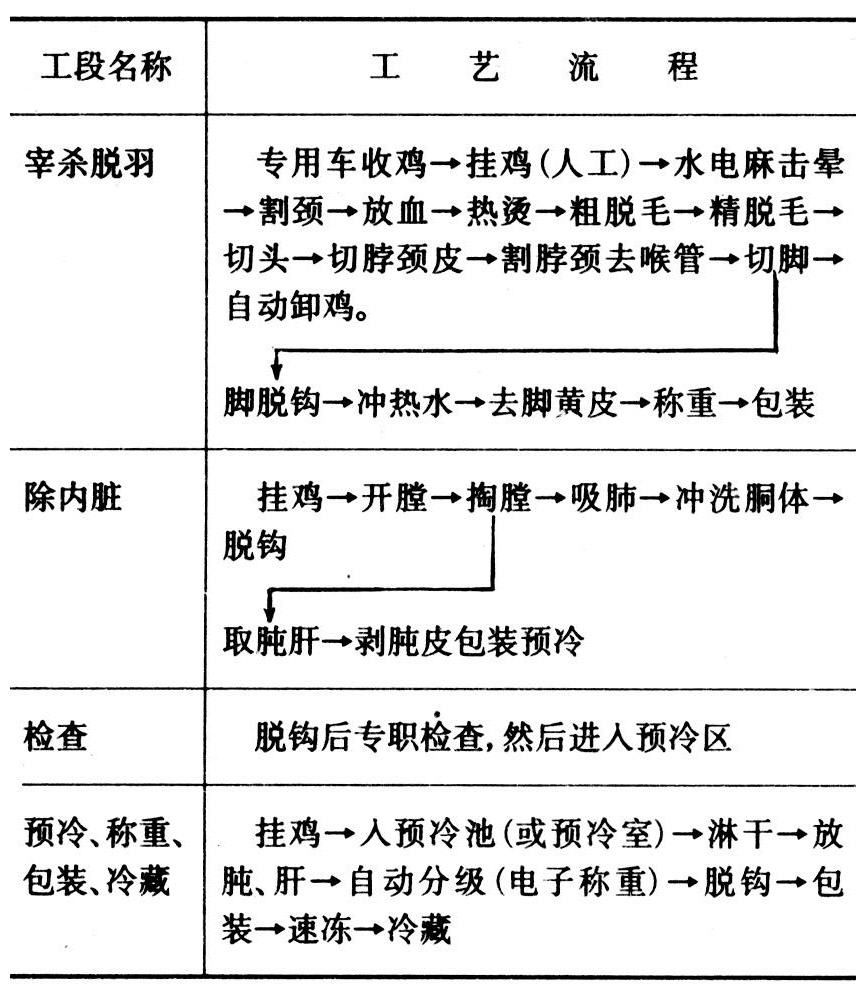 大型屠宰设备的工艺流程见下页表。