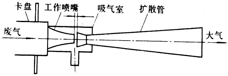 引射器的结构和工作原理如图2所示。在吸肥过程中,柴油机排出的废气流经引射器,在工作喷嘴内流速增大,压力降低,从而使吸气室内的真空度增加;并通过吸气室接口所装的吸气胶管与液肥罐接通,使液肥罐内处于负压状态,液肥池内的液肥在大气压力作用下连续不断地流入罐内。当需要压出液肥时,将引射器改换为加压盖,通过加压胶管(与吸气管共用)使排气管与液肥罐直接连通,对液肥罐增压,加速液肥从尾管流出,并压送到一定高度。与小型拖拉机配用的自吸式厩液施洒机的压肥高度可达4米,吸满一罐需4~6分钟。