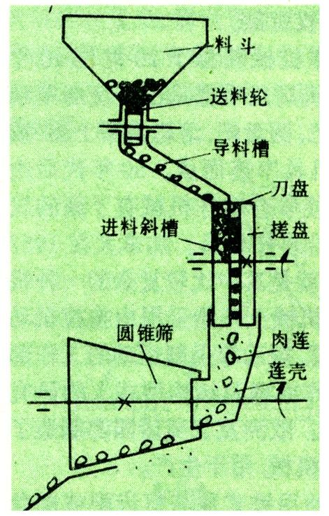 去除莲子外壳的机器。莲子是丰富的营养食品,又可药用,但其外壳坚硬光滑,去壳后的肉莲要求外形完整,加工十分困难。过去都是人工剥壳,工效低。1980~1984年,中国研制并生产出利用滚搓和撞击等不同原理剥壳的莲子剥壳机