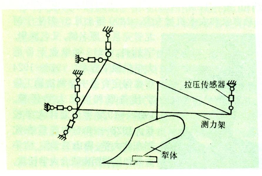 用于测量犁体、圆盘耙片等耕作阻力的六个分量的专用装置。这些耕作部件工作时承受的土壤阻力为一空间力系,可分解成沿着三个互相垂直的坐标轴的三个力和三个力偶矩共六个分量。测量六个分量的装置有悬架式、管式、管梁式等几种型式。悬架式悬架式六分量测力装置如图1。将被测犁体安装在一个专门的测力架上,测力架由6个测力传感器所支持。根据传感器测得的数据,经整理后可简化为耕作阻力的各种表达形式。