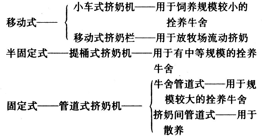 根据挤奶设备的结构特点和使用方式的不同可分为: