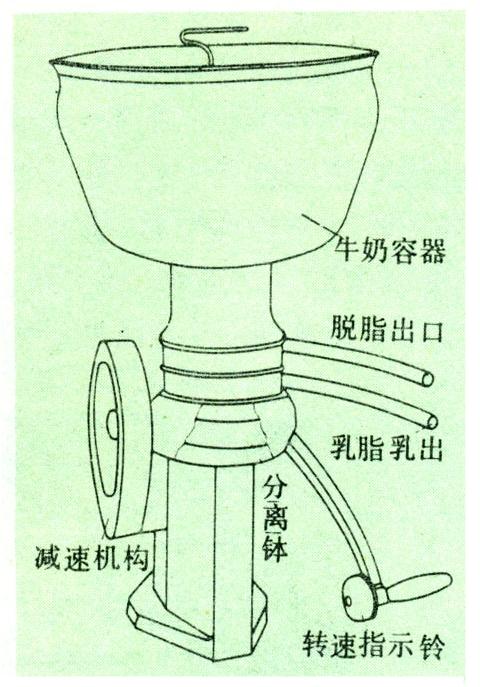 牛奶在分离前必须过滤并预热到35~40℃,以降低牛奶粘度,增大乳脂与脱脂乳之间的比重差,提高分离效率。但温度过高会使部分蛋白质变性凝固,反而增加牛奶粘度,影响分离。手摇牛奶分离机的摇把上装有转速指示铃。未达额定转速时,每摇一圈会有一声铃响,以免转速过低影响分离质量。